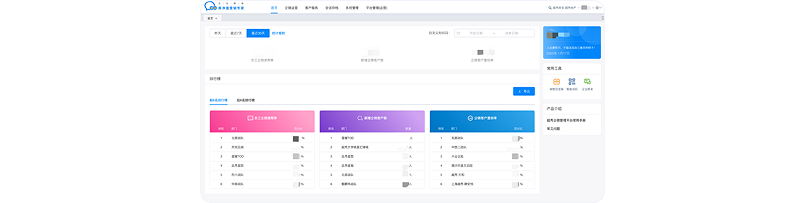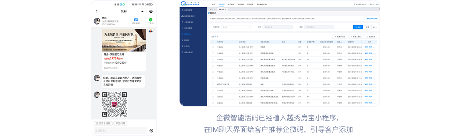 原圈为越秀地产基于企微建设空军智慧营销私域跟客管理平台,链接“越秀空军”与客户,通过企微打造一个统一的客户管理入口,完成客户来源、分配、跟进、报备等数据全链路打通,实现全渠道客户管理和监控;实现通过企微活码、企微海报裂变、群活码来承接线索客户;遵循企微营销规则设定,实现自动欢迎语、自动线索分配和报备;并通过企微销售百宝箱及企微精准客户触达,高效的运营客户,结合融合业务的SOP平台执行规划,大大提升对客流程,全方位增强企业与客户的连接,推动业务的持续增长与发展。